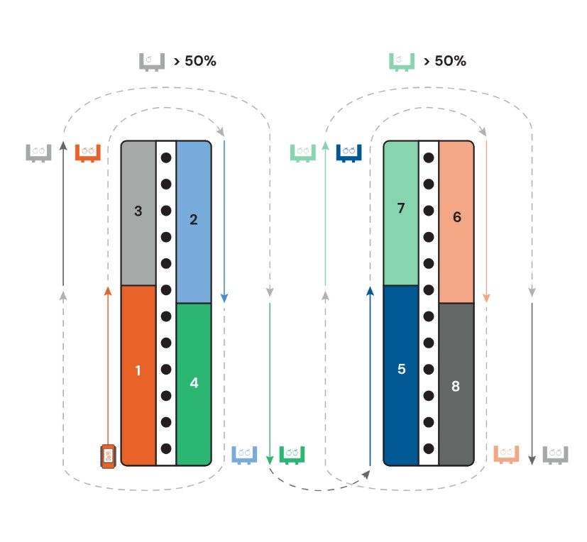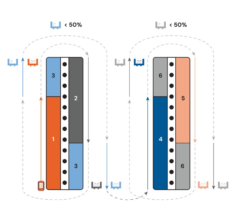 This movement with a full basket will take time and not contribute to the operation, so the strategy must be selected wisely.
